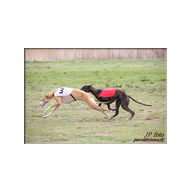Šotek to měl těžší (nejen přihlédnu-li k jeho nadváze :). V prvním kole se jim návnala přerušila v půlce trati, po znovupuštění vyběhl na druhou stranu a tak se stalo, že byl o 1 bodík za Dagem po prvním kole. V druhém kole běžel s Tynou, zpočátku šel s nadšením, dokonce i překonal nataženou překážku, ale pak ho to nějak přestalo bavit a když se Tyna podběhnutím dostala blíže k návnadě a tedy i do cíle, asi si řekl že na to "prdí". Ale aby mi udělal radost, alespoň došel k návnadě. Bylo z toho tedy právoplatné 2. místo za Dagem, no hold mládí vpřed!